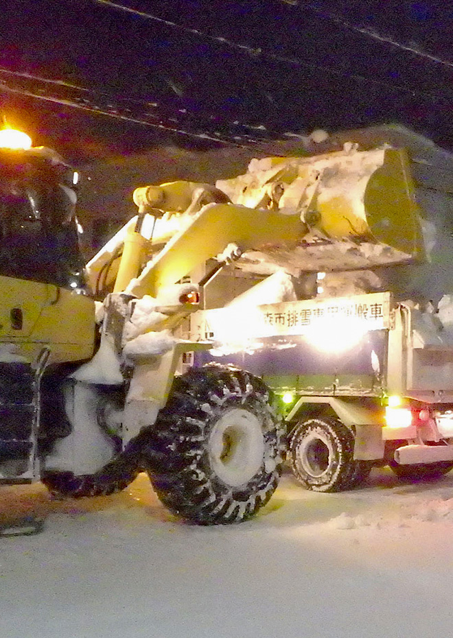 - ショベルローダーでの除雪、ダンプによる排雪を行っております。